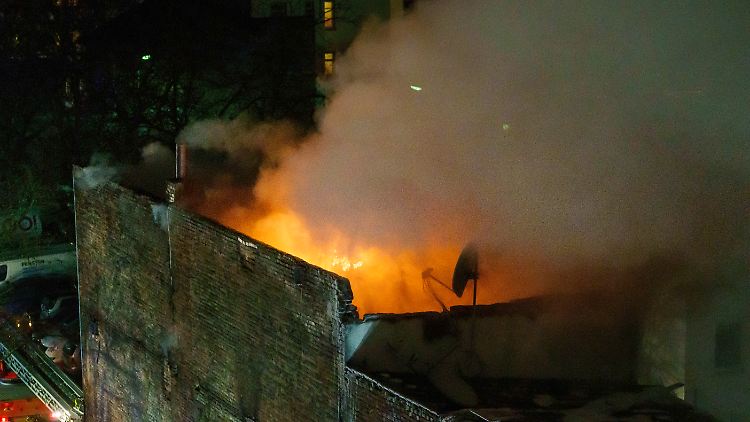 Alle drei Etagen des Wohnhauses brannten bis zum Dienstagabend aus. Gegen 20.30 Uhr war das Feuer unter Kontrolle, die Löscharbeiten hielten aber bis weit nach Mitternacht an. "Wir können derzeit nicht in das Gebäude, da die Decken einsturzgefährdet sind. Das macht auch Probleme, die Glutnester abzulöschen, da diese immer wieder aufflammen", sagte der Feuerwehrsprecher. Der Einsatz werde bis in die Morgenstunden andauern. Auch die tote Person könne frühestens bei Tageslicht aus dem Haus geborgen werden.