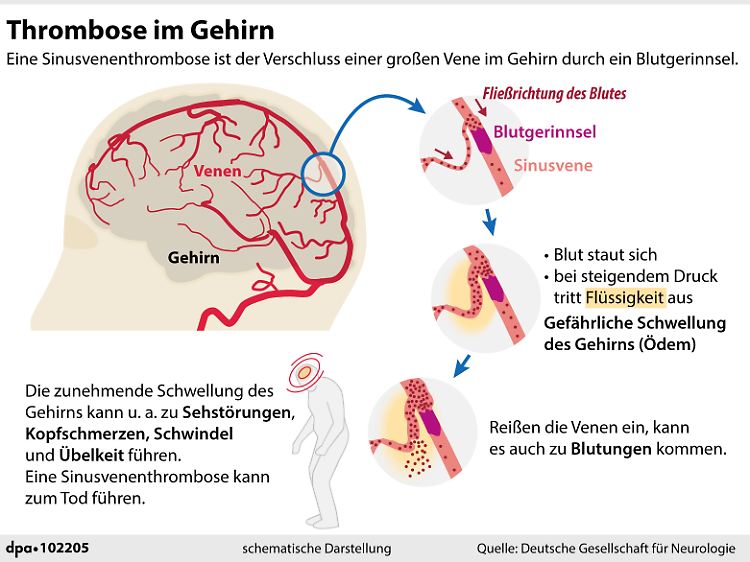 Nach Angaben des für die Sicherheit von Impfstoffen zuständigen Paul-Ehrlich-Instituts (PEI) hatte sich die Zahl der gemeldeten Sinusvenenthrombosen, einer speziellen Form von Hirnvenenthrombosen, nach Impfung mit dem Astrazeneca-Impfstoff bis zum vergangenen Freitag auf 14 erhöht. Aktuellere Zahlen gab es bislang nicht. Die Krankenschwester wäre demzufolge der 15. Fall in Deutschland, bei dem eine solche Thrombose nach der Impfung auftrat.