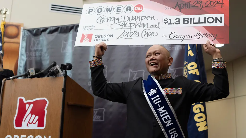 Ein krebskranker Einwanderer aus Laos hat in den USA einen 1,3 Milliarden Dollar (gut 1,2 Milliarden Euro) schweren Lotto-Jackpot geknackt. Der 46-jährige Cheng Saephan kündigte umgehend an, er werde den Gewinn mit seiner Ehefrau und einer Bekannten des Paares teilen, die sich mit 100 Dollar am Loskauf beteiligt hatte. Die Lotteriegesellschaft im Bundesstaat Oregon präsentierte ihn bei einem Pressetermin als glücklichen Käufer des Gewinnerloses - ein in den USA durchaus übliches Vorgehen, das für den Sieger entsprechenden Medienrummel bedeutet. Für die Fotografen hielt Saephan einen Riesenscheck strahlend in die Höhe.