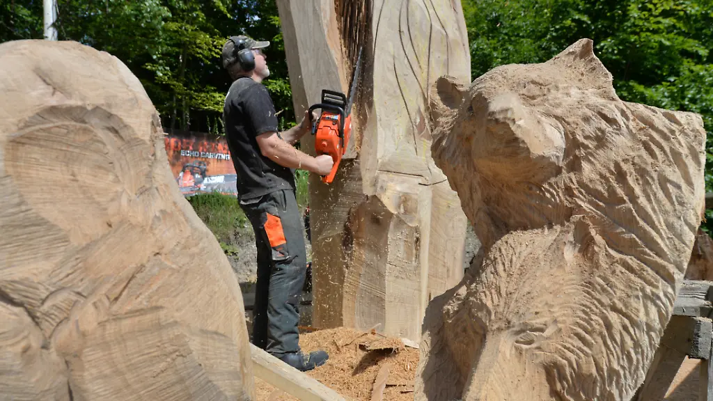 Bereits seit vorigem Montag ist ein Großteil der Künstler am Werk. Sie schnitzen an den sogenannten Hauptfiguren, die am Montag um 14.00 Uhr fertig sein müssen. "Die großen Wildtiere Europas bei der Liebe oder im Kampf", lautet das diesjährige Motto. Im Vorjahr hieß das Thema "Wikinger überfallen ein Dorf". Von Samstag an stehen auch die Schnellschnitz-Wettbewerbe (Speedcarving) auf dem Programm. Dabei misst sich ein deutsches Team mit einer gemischten Auswahl aus Tschechien und der Slowakei. Die Stücke aus dem Schnellschnitz-Wettbewerb werden versteigert - Sieger im Speedcarving wird, wer den höchsten Versteigerungserlös erzielt. In den beiden Jahren zuvor hatte der Gastgeber sowohl gegen Großbritannien als auch gegen die USA gewonnen.
