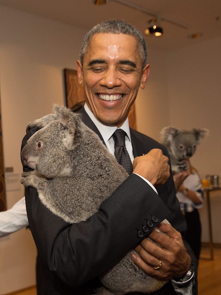 Der damalige US-Präsident Barack Obama ging 2014 in Brisbane mit einem Koala auf Tuchfühlung.