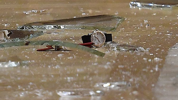 Der 43-jährige Wachmann liegt mit einer schwer verletzten Schulter im Krankenhaus. Wie hoch die Beute ist, steht laut Polizei noch nicht fest. Die Höhe werde aber auch später nicht mitgeteilt - aus ermittlungstaktischen Gründen. Am Eingang des Geschäfts war am Abend eine zerstörte Glasvitrine zu sehen.