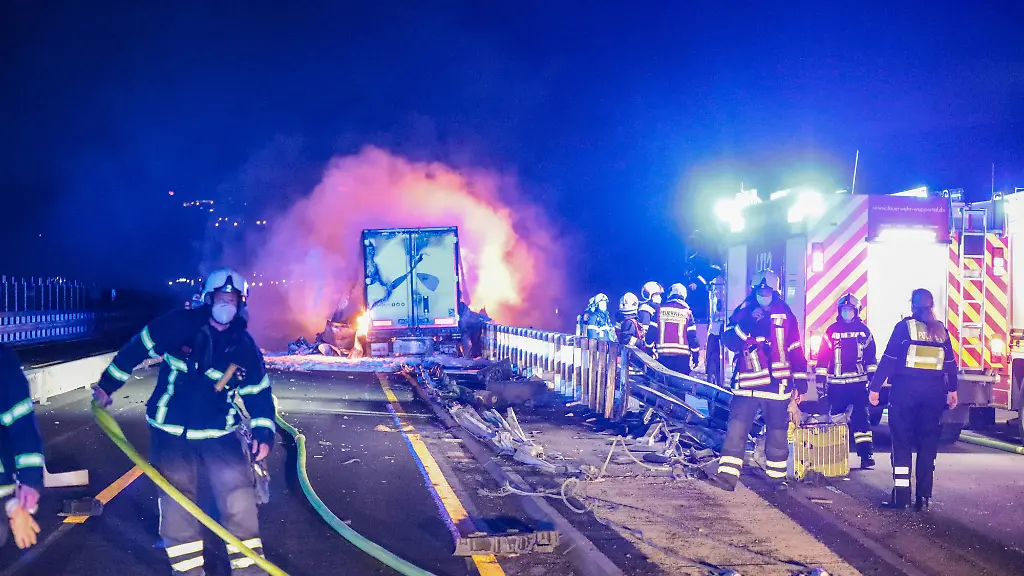 Wie ein Feuerwehrsprecher sagte, hatte das Fahrzeug mitsamt seiner Ladung beim Eintreffen der Einsatzkräfte vollständig in Flammen gestanden. Weil sich der Diesel großflächig über zwei Fahrbahnen verteilt habe und auch Löschschaum zum Einsatz kam, müsse die Autobahn aufwendig gereinigt, teilweise abgefräst werden. Den Angaben zufolge sollten Statiker nach dem Feuer auch die Sicherheit der Brücke bestätigen. Der Brand und die starke Hitze könnten Schäden an Fahrbahn und Bauwerk verursacht haben.