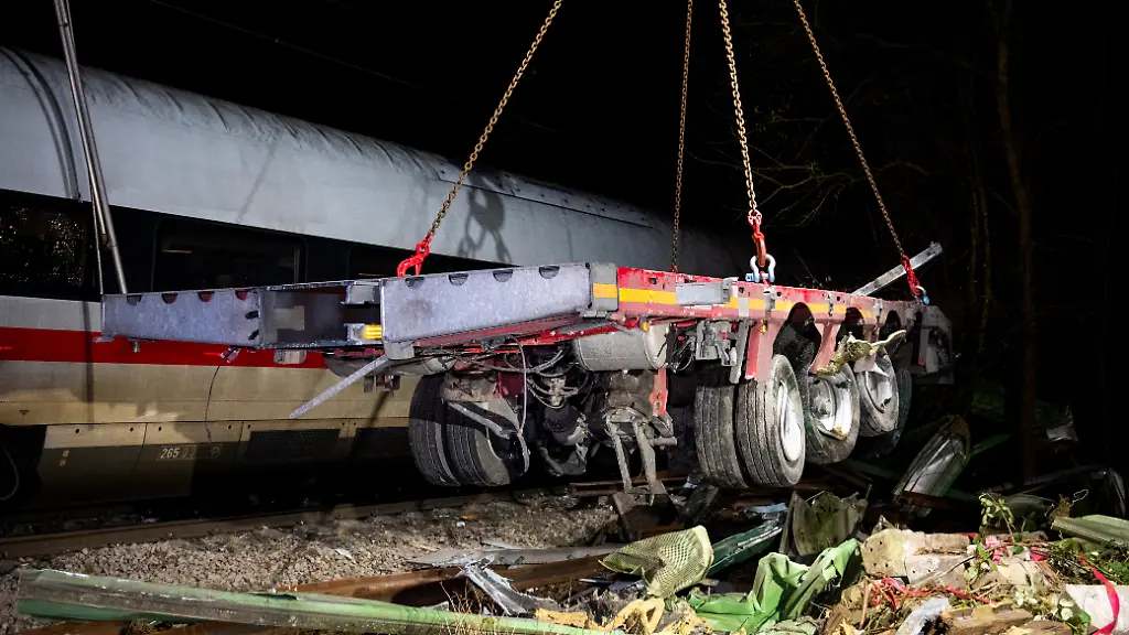 Der ICE mit 291 Insassen war am Dienstag mit einem Lastwagen zusammengestoßen, der sich auf einem Bahnübergang befand. Der Zug war zum Zeitpunkt des Unfalls mit hoher Geschwindigkeit unterwegs und rammte den Lkw trotz Notbremsung mit solcher Wucht, dass vor allem in den vorderen Wagen die Fensterscheiben zerbrachen, wie eine Augenzeugin schilderte.