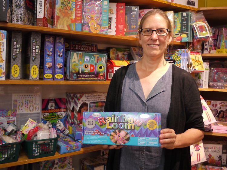 In einem Spielwarenladen in New York: Die Rainbow Loom Bands, Freundschaftsbänder aus Gummi, sind derzeit der große Verkaufshit in den USA.