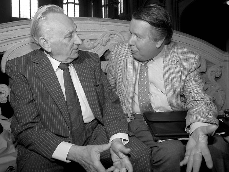 Egon Bahr (l.) und Lothar Loewe 1997 im Kriminalgericht Berlin-Moabit während des DDR-Politbüro-Prozesses.