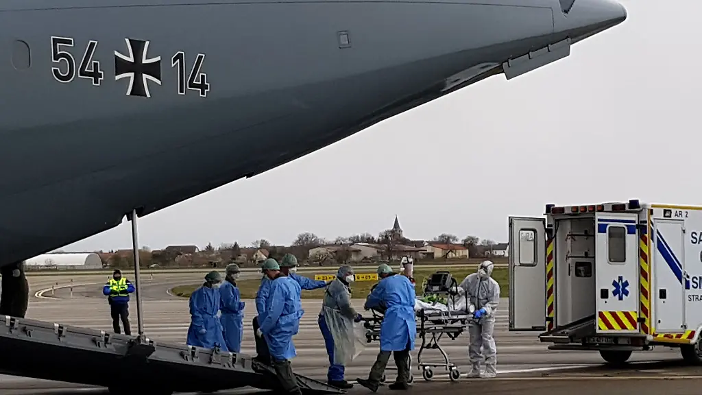 Bereits am Samstag hatte die Bundeswehr sechs Intensivpatienten aus der besonders schlimm betroffenen italienischen Stadt Bergamo nach Köln geflogen. Sie werden nach Angaben der NRW-Staatskanzlei nun im Katholischen Klinikum Bochum sowie in den Unikliniken Köln und Bonn behandelt. Die schwer erkrankten Franzosen sollen im Bundeswehrkrankenhaus in Ulm versorgt werden, wie es aus dem Verteidigungsministerium hieß.