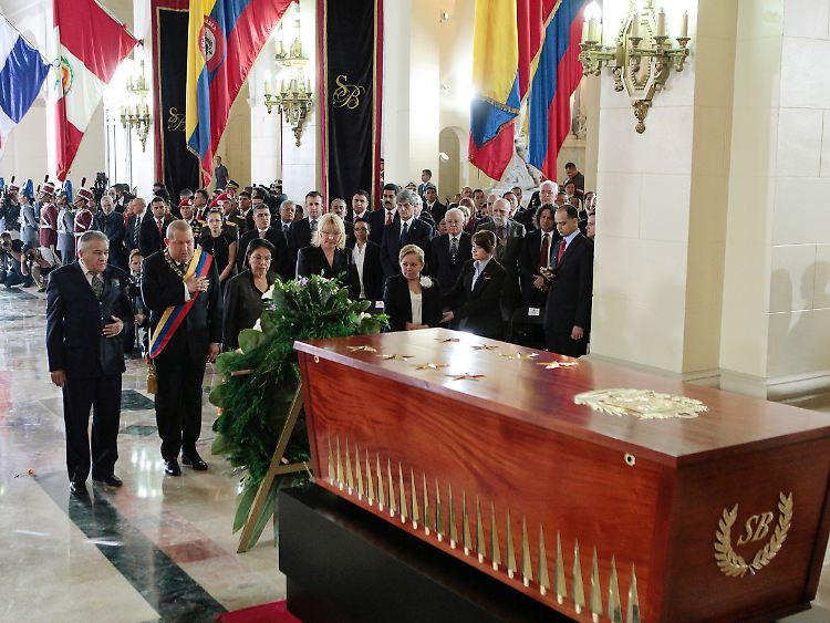 Bolívar war der bedeutendste Anführer Südamerikas im Kampf gegen die spanische Kolonialherrschaft und wird auf dem Kontinent bis heute als Volksheld verehrt. Seine sterblichen Überreste wurden 1842 von seinem Sterbeort, der kolumbianischen Stadt Santa Marta, nach Venezuela gebracht, seit 1876 lagen sie im Pantheon von Caracas. Historikern zufolge starb Bolívar 1830 an Tuberkulose. Chávez ist dagegen überzeugt, dass er vergiftet wurde. Mit seiner "Revolution für einen Sozialismus des 21. Jahrhunderts" sieht sich Chávez in direkter Nachfolge Bolívars, er ließ den Namen seines Landes sogar in Bolivarische Republik Venezuela ändern.