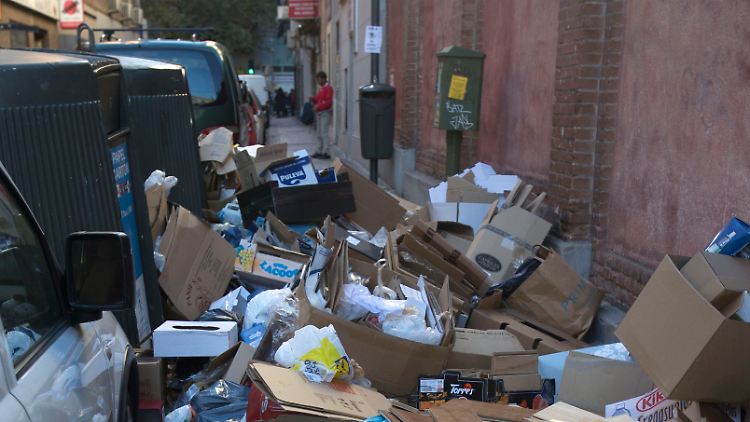 Nach einem mehr als einwöchigen Streik bei der Madrider Stadtreinigung sehen viele Straßen in der spanischen Hauptstadt aus wie Müllhalden. Die Bürgersteige sind mit Essensresten, Plastiktütchen mit Hundekot und anderen Abfällen übersät. Die Streikenden, die mit dem Ausstand gegen eine Entlassung von Mitarbeitern protestieren, hatten zahllose Papierkörbe aus den Halterungen gerissen und den Inhalt über das Pflaster verstreut. Sie setzten Dutzende von Altpapier-Containern in Flammen.
