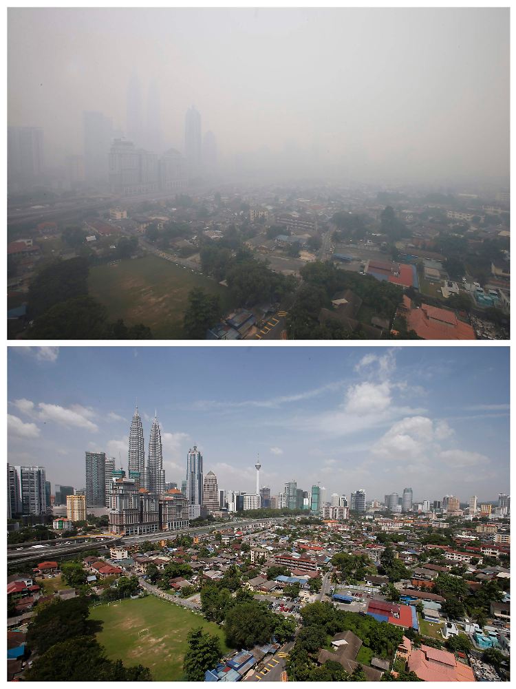 Auch in zwei weiteren Städten im Süden Malaysias lag der Smogwert so hoch, dass Gefahr für die Gesundheit bestand. In der Hauptstadt Kuala Lumpur war die Luftqualität ebenfalls schlecht. Die 452 Meter hohen Petronas Twin Towers waren wegen des Dunsts auch aus kurzer Entfernung nicht zu sehen. Viele Einwohner schützten sich mit Gesichtsmasken.