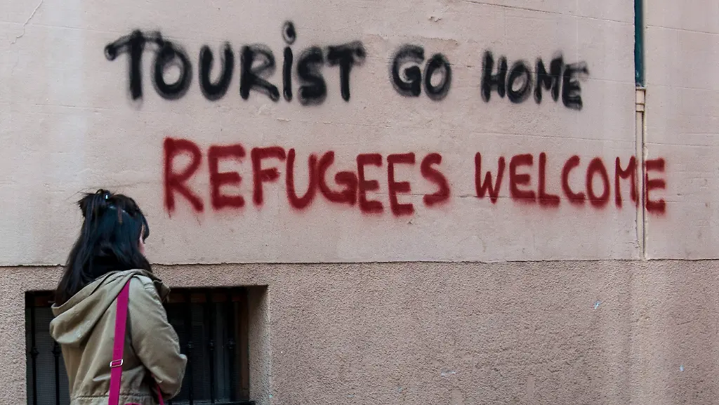 Die Angst vor Terroranschlägen in der Türkei, Nordafrika und anderen klassischen Reisezielen beschert Spanien derzeit touristische Rekordzahlen. Für ihren alljährlichen Frühlingsabstecher hatte sich auch Dagmar kurzfristig "aus Sicherheitsgründen" diesmal doch gegen Tunesien und für Mallorca entschieden. So sicher fühlte sich die junge Hamburgerin auf der Urlaubsinsel dieser Tage aber auch nicht mehr. "Beim Bummel durch Palma blieb mir plötzlich das Eis im Hals stecken, ich habe mich richtig erschrocken", erzählt sie. "Tourist go Home" und "Refugees welcome" sah sie in roter und schwarzer Farbe groß auf einer Wand.