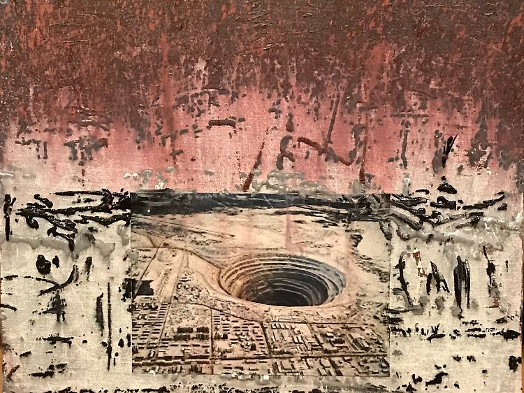 (Foto: G. Groenke, CITY X. Acrylic, Mix Media, 30x30 in, 76x76 cm. Hope, USA 2022)