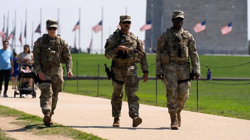 Die Nationalgarde patrouilliert in Washington - angeblich wegen ausufernder Kriminalität. Ein Mann aus der US-Hauptstadt protestiert dagegen, indem er den Truppen hinterherläuft und den "imperialen Marsch" aus "Star Wars" abspielt. Dafür wird er in Handschellen gelegt.