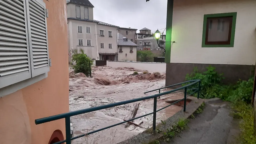 Auch die österreichische Stadt Hallein in der Nähe von Salzburg kämpft mit Überflutungen infolge des Unwetters. Als ein Mann seine Nachbarn in den Sturzfluten erblickt, zögert er nicht lange und springt unter Einsatz seines Lebens ins Wasser. Nun wird er im ganzen Land für seinen Einsatz gefeiert.