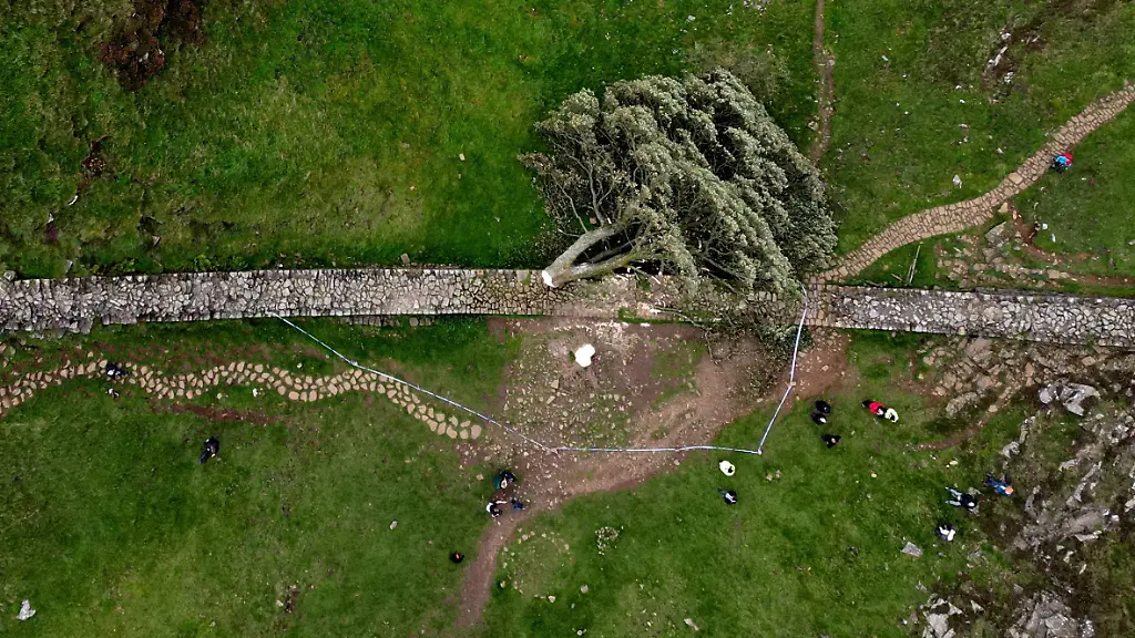 Noch sind die Vandalen nicht gefunden, die den berühmten "Sycamore Gap Tree" nahe des Hadrianswalls in einer nächtlichen Aktion gefällt haben. Ein junger Brite versucht, mit einem Baum an gleicher Stelle wieder Hoffnung zu geben. Doch auch das ist nicht erlaubt.