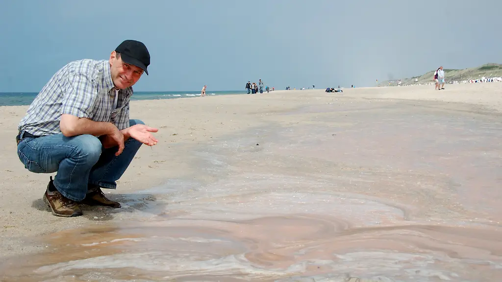 Vor der Sylter Westküste entsteht ein faszinierendes Schauspiel. Das Wasser nimmt eine rostrot bis rosa Farbe an, wird schaumig. Bewohner und Urlauber reagieren besorgt, doch das Umweltamt gibt Entwarnung: Es handelt sich um ein seltenes Naturphänomen.