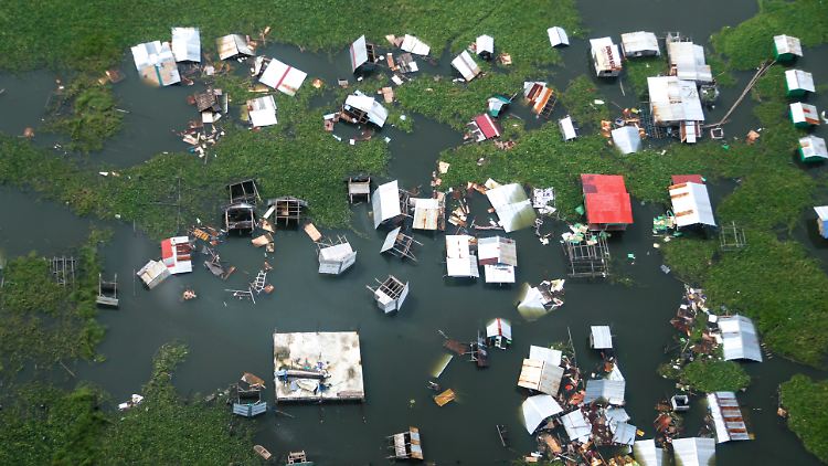 In der philippinischen Provinz Laguna stehen Häuser nach dem Tropensturm "Trami" unter Wasser.