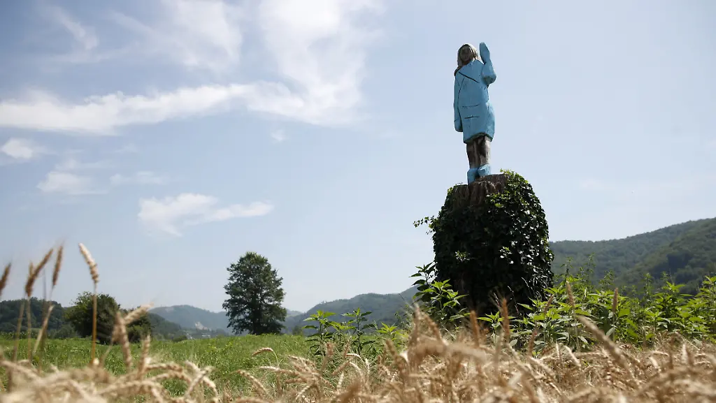 Die aus Slowenien stammende Melania Trump, Ehefrau des US-Präsidenten, hat in ihrem Geburtsland eine lebensgroße Skulptur erhalten. Das aus Holz geschnitzte, recht grobschlächtig wirkende Ebenbild der First Lady wurde in einem Waldstück nahe ihrem Heimatort Sevnica im Südosten des Landes enthüllt, wie slowenische Medien berichteten. Die hölzerne Melania steht auf einem efeubewachsenen Sockel und winkt ihrer Heimatstadt zu. Ihren Körper umhüllt ein himmelblaues Kleid, wie sie es bei der Amtseinführung von Donald Trump im Januar 2017 getragen hatte.