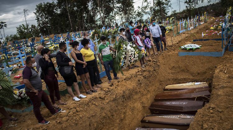 Auf dem Friedhof Parque Tarumã wurden Massengräber angelegt, um der Zahl der Corona-Opfer Herr zu werden. Auf im Internet geteilten Videos ist zu sehen, wie sich die Leichenwagen vor den Friedhöfen stauen. "Mehrere Friedhofsmitarbeiter sind krank geworden, einige sind sogar am Coronavirus gestorben", erzählt der Bürgermeister.