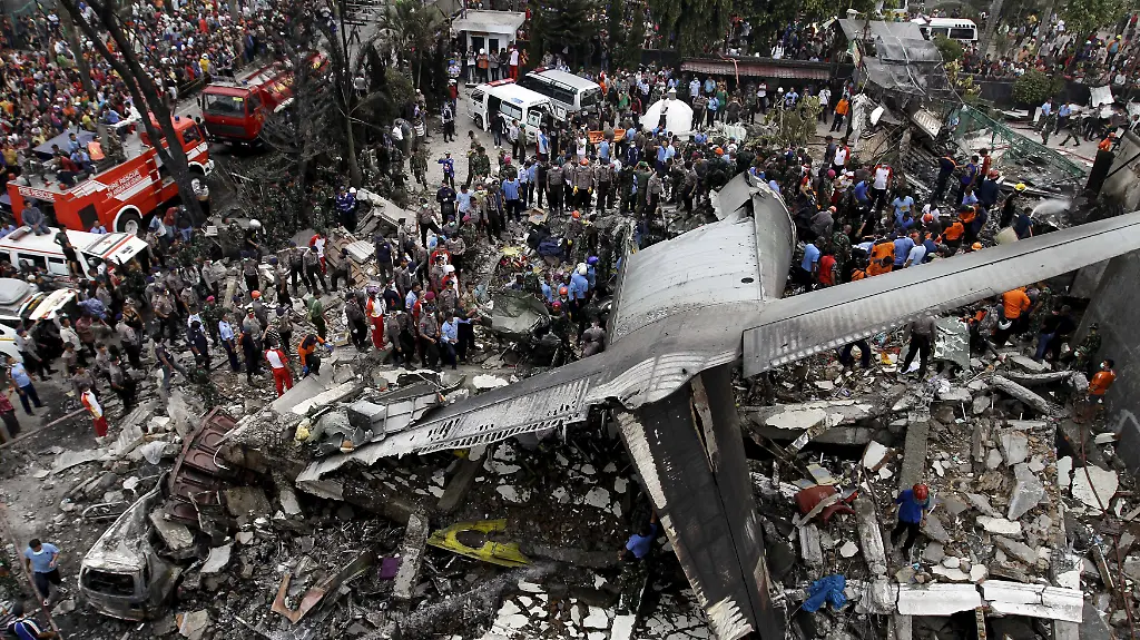 Dutzende Tote auf SumatraMilitärmaschine stürzt in Wohngebiet