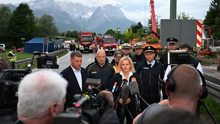 Faeser war von der Innenministerkonferenz in Würzburg mit dem Auto nach Garmisch-Partenkirchen gekommen. Bayerns Ministerpräsident Markus Söder von der CSU schrieb auf Twitter, das Zugunglück "erschüttert und macht tief betroffen". Für Samstagmorgen kündigte Söder einen Besuch der Unglücksstelle an. Zudem werden Bundesverkehrsminister Volker Wissing von der FDP und Bahnchef Richard Lutz am Samstag am Unglücksort erwartet.