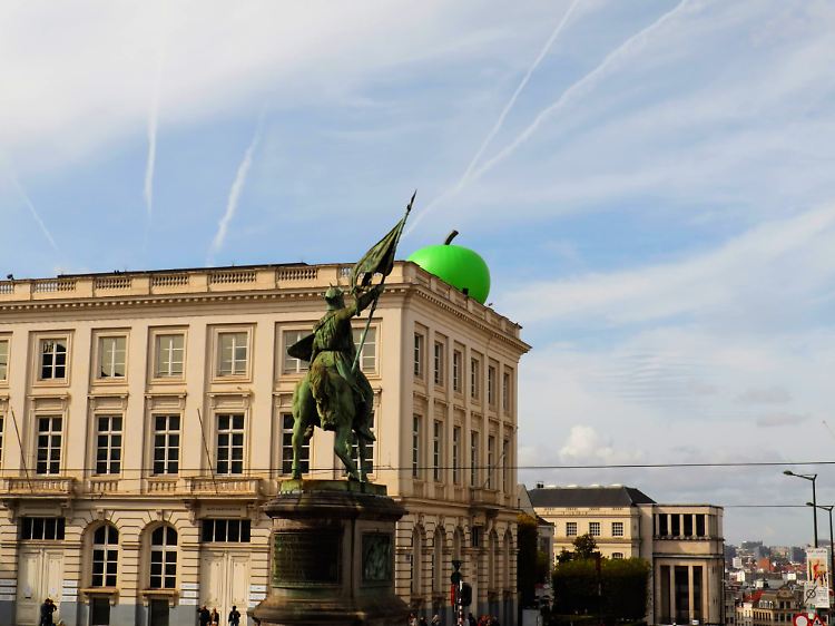 Die Metamorphosen des Realen von damals setzen die Fantasie flirrend in Gang. Wer sich in diesen Bilderkosmos vertieft, wird dazu gebracht, die Umgebung vor den Ausstellungshäusern neu zu betrachten. Die Grenzen verschwimmen, ganz Brüssel steckt plötzlich voller unerwarteter Kontraste. Alles so surreal hier! Ein riesiger grüner Apfel à la Magritte befand sich gerade noch auf dem Dach des Magritte Museums. Jetzt ist er verschwunden.
