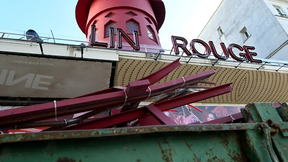 Das Windmühlrad des Pariser Varietétheaters Moulin Rouge ist vom Dach auf den Bürgersteig herabgestürzt, ohne dass Menschen verletzt worden sind. Die Ursache des Vorfalls in der Nacht zum Donnerstag sei noch unklar, sagte der Pariser Polizeipräfekt Laurent Nuñez dem Sender TF1. Die Umgebung sei abgesperrt worden und Experten untersuchten die Sicherheit des Gebäudes. Auf Bildern war zu sehen, dass das beschädigte Mühlrad als Ganzes vor dem Cabaret-Theater lag. Auch drei Buchstaben der großen Moulin-Rouge-Beschriftung wurden abgerissen.
