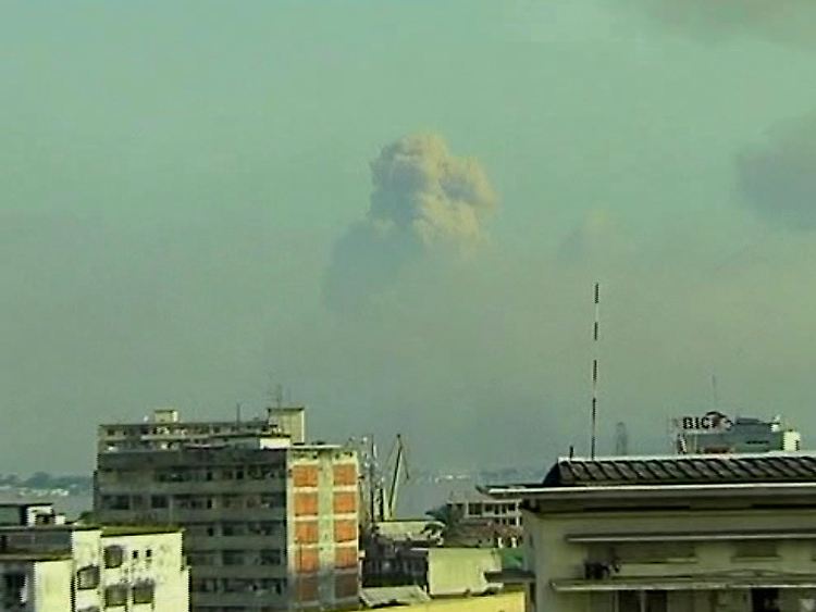 Seit der ersten Detonation stiegen über der Stadt Rauchsäulen auf, auch gegen Mittag waren noch leichte Explosionen zu hören. Ein Teil einer Kirche im Stadtzentrum stürzte ein, und mehrere Scheiben gingen zu Bruch, wie Verantwortliche des Gotteshauses sagten. In Kinshasa zitterten entlang des Kongo-Grenzflusses die Fensterscheiben.