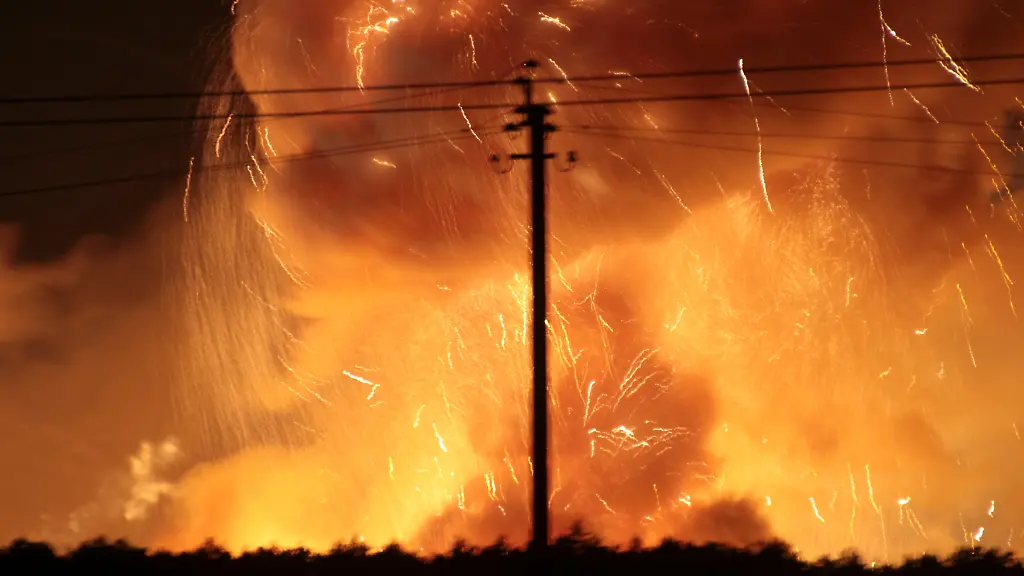 In einem Munitionsdepot 200 Kilometer westlich von Kiew lagern viele Artilleriegranaten. Als ein Brand ausbricht, verursachen sie ein Inferno am Himmel. Es ist nicht der erste Vorfall dieser Art.