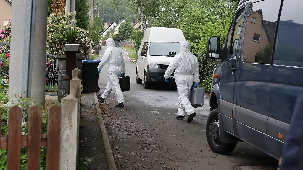 Kurz nach der blutigen Tat ist es außergewöhnlich ruhig in der gepflegten Siedlung mit Reihenhäusern. Hohe Hecken und alte, große Bäume verdecken den Blick auf den Tatort. Der Rasen vor dem Haus ist frisch gemäht, Blumen blühen auf den zwei Balkonen und in Töpfen am Eingang. Eine Katze schleicht verängstigt zwischen den Grundstücken. Lediglich Kriminaltechniker mit weißen Overalls kommen aus dem Haus.