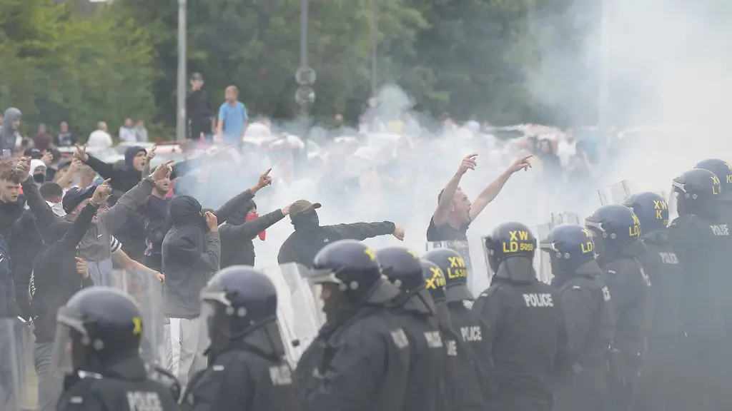 Bei den Ausschreitungen waren Dutzende Polizisten verletzt sowie Fahrzeuge angezündet und Geschäfte geplündert worden. Vorausgegangen war eine Messerattacke in der Stadt Southport, bei der drei Mädchen getötet und weitere Menschen verletzt wurden. In sozialen Netzen wurde die Lüge verbreitet, der Täter sei ein muslimischer Migrant.