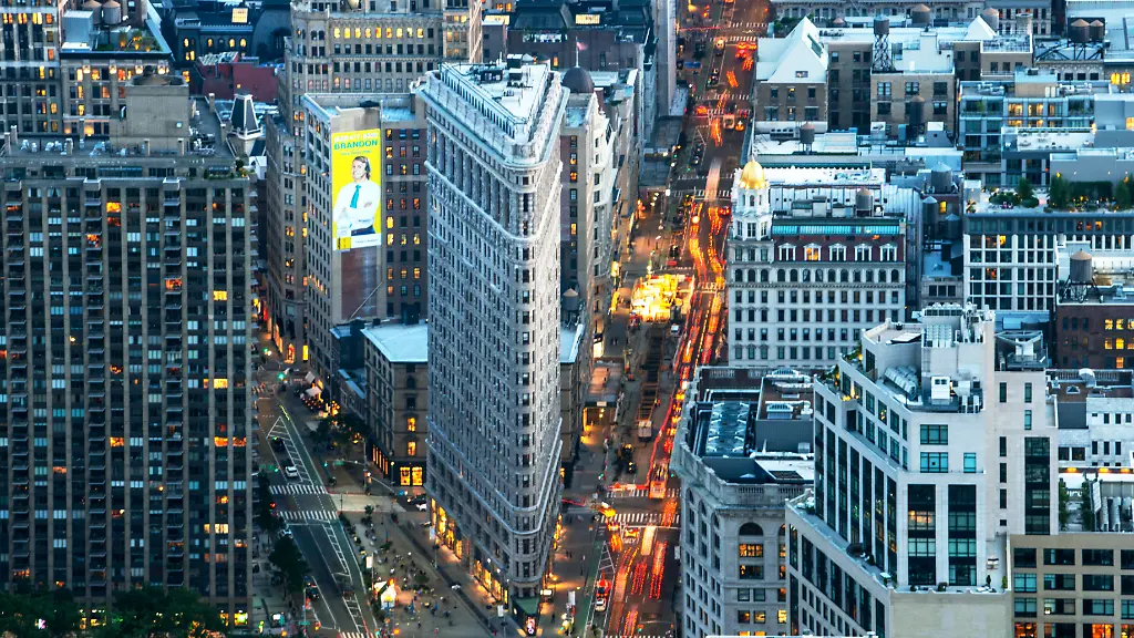 Eröffnet wurde das etwa 90 Meter hohe Flatiron Building, das auch in vielen Filmen und Fernsehserien zu sehen ist, im Jahr 1902 - an der Kreuzung von Broadway, 23rd Street und Fifth Avenue, mitten in Manhattan. Gegenüber liegt heute der Madison Square Park. Eigentlich hieß das Gebäude von Architekt Daniel Hudson Burnham "Fuller Building", da es als Hauptquartier des Bauunternehmens Fuller gebaut und anfangs auch genutzt wurde. Aber der Spitzname Flatiron setzte sich bald durch und wird inzwischen auch für die gesamte Gegend drumherum verwendet.