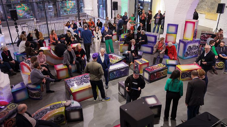 Künstlerinnen und Künstler laden mit Selbstgekochtem zum Essen. Diese Dinner, aber auch Partys und Konzerte, sind für Museumsförderer und Bedürftige gedacht. Es wird gut gemischt eingeladen und genau geschaut, wer kostenfrei genießen darf. "Über Essen und feiern passiert ganz viel", ist Noura Dirani sicher. "Kunst muss für alle zugänglich sein", sagt sie ntv.de beim Besuch in Lübeck. Seit einem Jahr ist sie die Direktorin des Hauses und will Menschen zusammenbringen, die im Alltag wenig Gemeinsamkeiten haben. Mit "Hello Lübeck! Dialoge mit Kunsthalle St. Annen", der von ihr kuratierten Ausstellung, sucht sie bewusst ein jüngeres Publikum. Dialog, klingt das nicht etwas angestaubt oder zu spießig für die neue Zielgruppe? Dirani lacht und gibt zu, dass die Unterzeile unsexy klingen mag, aber genau treffe, was sie erreichen möchte. "Die Jugendlichen und Kids sollen Lust haben, hierherzukommen und sich spielerisch durch die Räume zu bewegen."