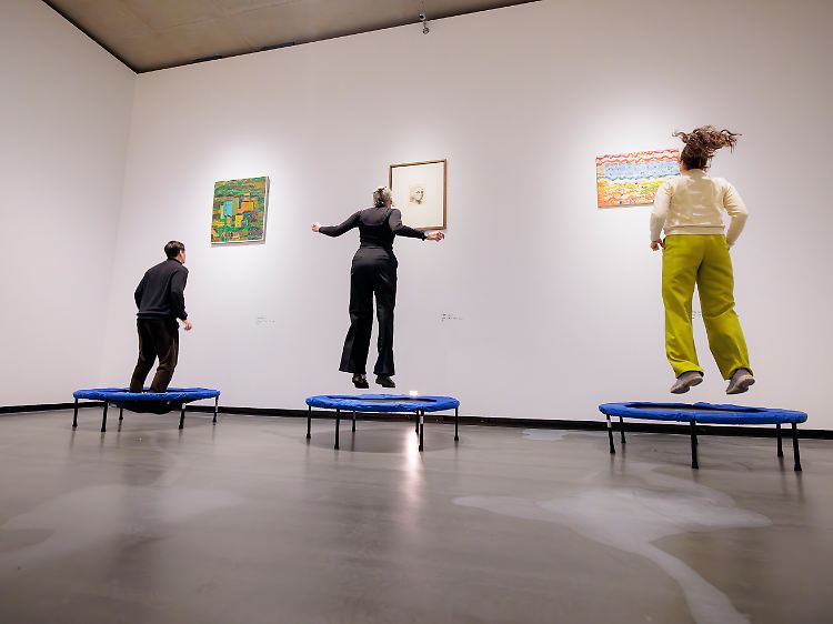 Noura Dirani lässt Bilderfetzen im Museum verteilen, und nach einigem Hin und Her können die Schatzsuchenden ein großes Bild betrachten. Sie selbst habe fast 45 Minuten gebraucht, ruft sie den Jugendlichen zu, die mit der Puzzelei in 20 Minuten fertig waren. Jetzt haben sie Zeit, sich mehr Kunst - auf einem Trampolin hopsend - anzuschauen. Freudenschreie klingen durch das Haus.
