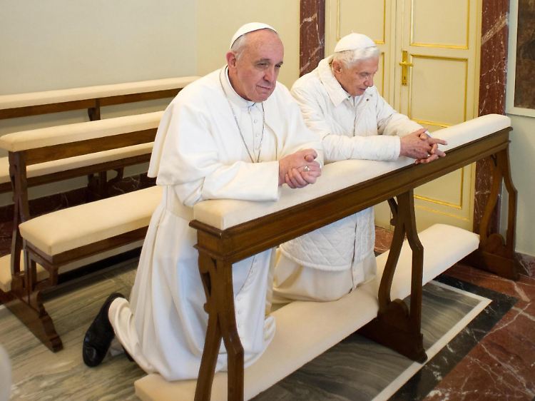 Franziskus und Benedikt am 23. März 2013 im Gebet. Zehn Tage zuvor war Franziskus zum Papst gewählt worden.