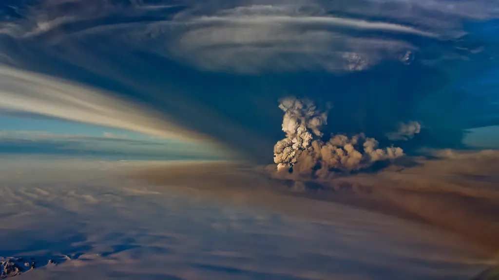 am Wochenende eine riesige Wolke mit Rauch und Asche 20 Kilometer hoch in den nordischen