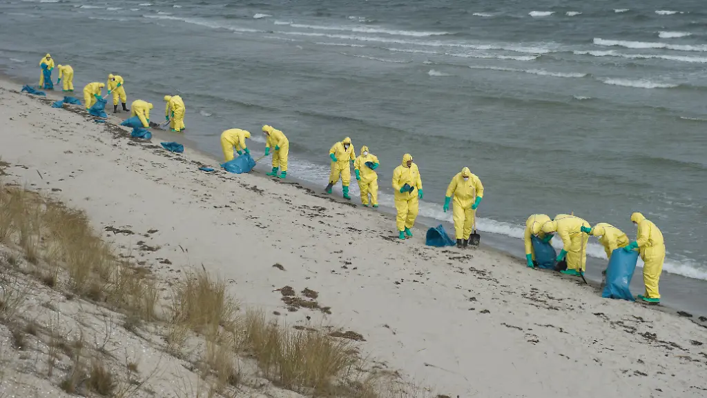 Schweröl hat kilometerlange Strandabschnitte der Ostsee-Inseln Rügen und Usedom verschmutzt. Dutzende Helfer waren im Einsatz, um die Strände zu säubern. Auf einem drei bis vier Kilometer langen Abschnitt am südöstlichen Zipfel Rügens nahe der Gemeinde Thiessow sei das Öl teilweise in den Boden eingedrungen, sagte der Kreisführer der Feuerwehr, Gerd Scharmberg. Eine etwa zehn Zentimeter tiefe Sandschicht müsse abgetragen werden. "Wir hoffen, dass wir im Laufe des Freitags fertig werden."