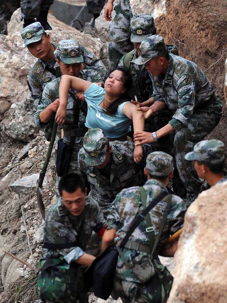 Chinas Staatsfernsehen zeigte Bilder von zerstörten Häusern in der Region. Rettungskräfte versuchten, Opfer aus den Trümmern zu bergen. Das Beben erschütterte auch die Provinzhauptstadt Chengdu und war noch in der mehrere hundert Kilometer entfernten Metropole Chongqing zu spüren. Ministerpräsident Li Keqiang ließ sich mit einem Helikopter nach Lushan bringen, um vor Ort die Hilfe zu koordinieren, wie die amtliche Nachrichtenagentur Xinhua berichtete. "Das wichtigste ist jetzt, die ersten 24 Stunden nach dem Beben zu nutzen. Es ist die entscheidende Zeit, um Leben zu retten", hatte er zuvor gesagt.