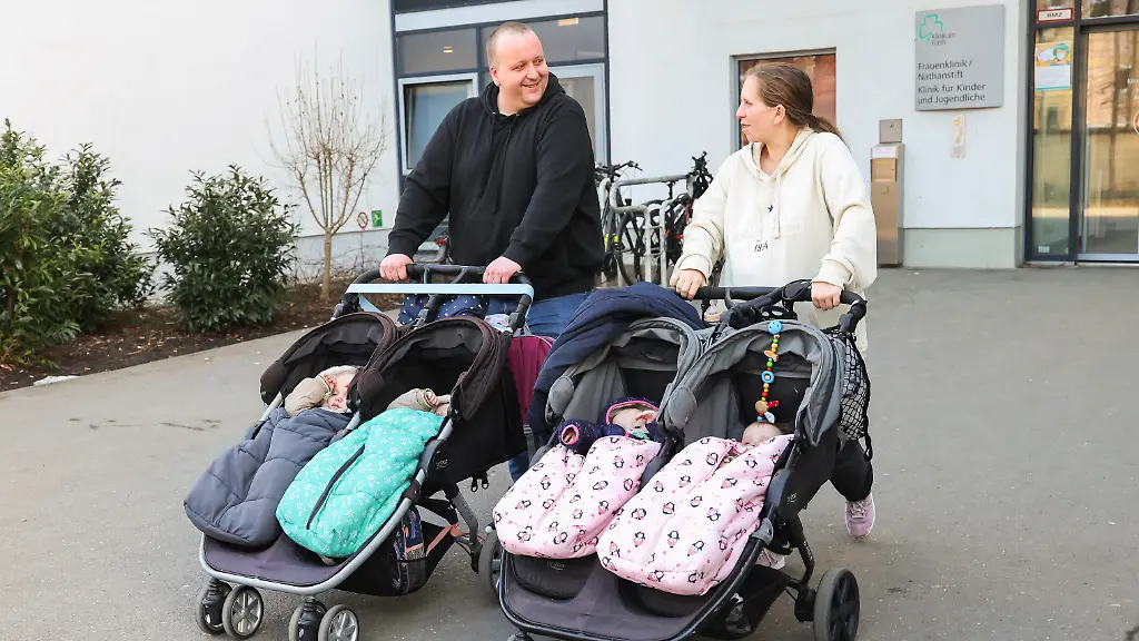 Für Familie Schmidt/Rittner mag es normal sein, für viele Menschen ist es dennoch unglaublich. Als das Paar mit den beiden Zwillingswagen an diesem Tag zur Vorsorgeuntersuchung ins Klinikum Fürth kommt, erntet es viele neugierige Blicke. "Zweimal Zwillinge?", fragt eine Besucherin auf der Geburtshilfe-Station ungläubig. Als sie hört, dass Jasmin Schmidt noch einmal doppeltes Glück erwartet, schüttelt sie fassungslos den Kopf. "Nein! Das ist ja echt selten." Auch viele Medien haben schon über die Familie berichtet.