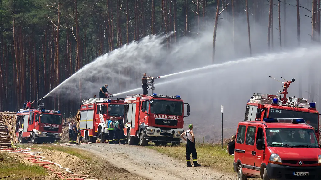 Hunderte Feuerwehrleute, die Polizei und auch die Bundeswehr sind bei Lübtheen in Mecklenburg-Vorpommern im Einsatz gegen die Flammen. Der Landkreis erwartet keinen schnellen Erfolg. Es geht nun vor allem darum, die umliegenden Dörfer zu schützen.