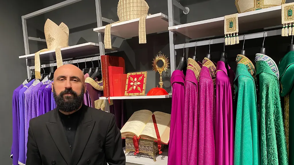 Passt das extravagante Künstlertum in die strengen Regeln der katholischen Kirche? Ja, sagt Sorcinelli in seinem Geschäft in Rom zwischen Gewändern und mit Kirchenmusik im Hintergrund. In dem Job religiös zu sein, das sei zwar "fundamental wichtig für diese Arbeit". Gleichzeitig müsse er jedoch auch seine künstlerische Freiheit ausleben können, um kreativ zu sein.