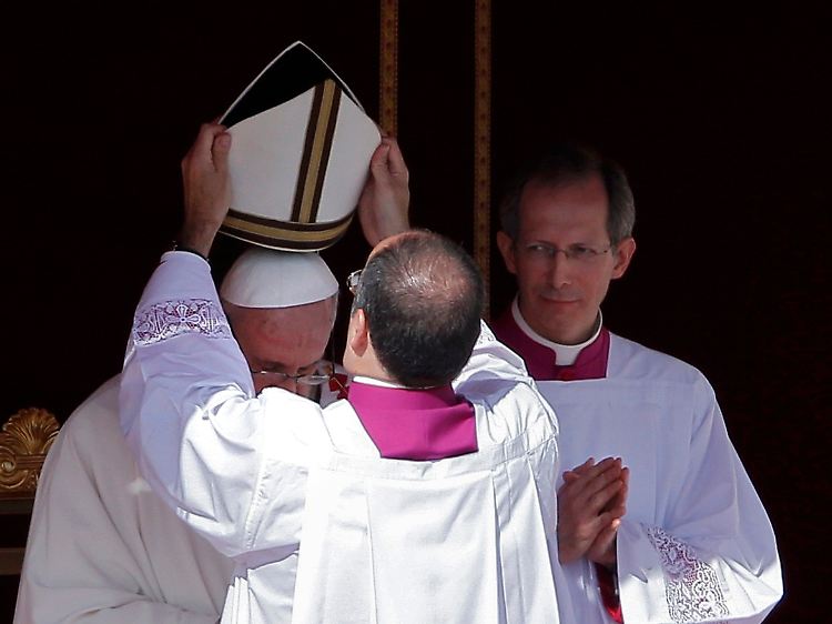 Franziskus wollte keinen Ring aus massivem Gold, sondern einen vergoldeten Silberring, den Kardinaldekan Angelo Sodano übergab. Den Wollschal bekam er von Protodiakon Jean-Louis Tauran umgelegt. Dieses Pallium hatte bereits Benedikt getragen.