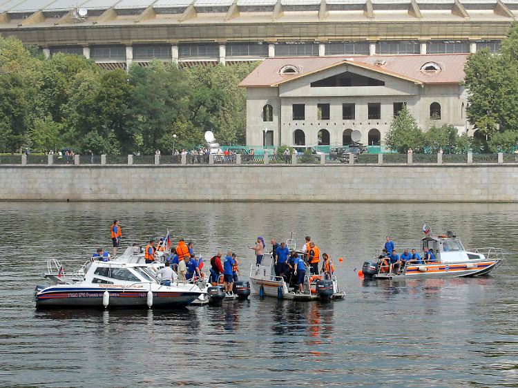 An der Unglücksstelle zwischen den Sperlingsbergen und dem Luschniki-Stadion ist die Moskwa etwa drei Meter tief - und in der Nacht kaum beleuchtet. Es ist schon hell, als Taucher in dem Wasser mit einer Sichtweite von rund einem halben Meter die Leichen bergen. Das Fernsehen zeigt in Tränen aufgelöste oder vor Schock starre Gesichter der Überlebenden, die in Decken gehüllt sind.