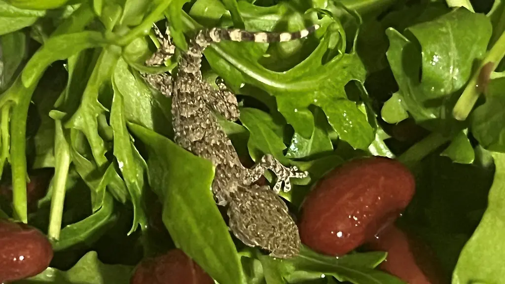 "Erst als ich den Rucola zu Bohnen, Zwiebeln und Mozzarella in die Schüssel getan hatte und den Salat anmachen wollte, sah ich plötzlich den kleinen Gecko." Erschreckt habe sie sich nicht: "Wir leben auf dem Land, da trifft man öfter wilde Tiere an."