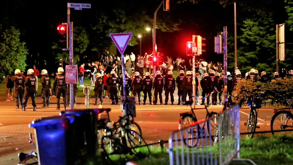 Körperverletzungen, Pyrotechnik und Flaschenwürfe: "Wegen aggressiver Randalierer" hat die Polizei in der Nacht eine beliebte Wiese am Aasee in Münster geräumt. Nachdem Kontrollen der Stadt zunächst Wirkung gezeigt und Hunderte Besucher friedlich gefeiert hatten, sei die Situation im Laufe der Nacht eskaliert, teilte die Polizei mit. Bis zu 250 teils betrunkene Menschen hätten sich versammelt, Böller gezündet, Plastik- und Glasflaschen auf die Einsatzkräfte geworfen und Aufforderungen über Lautsprecherdurchsagen ignoriert.