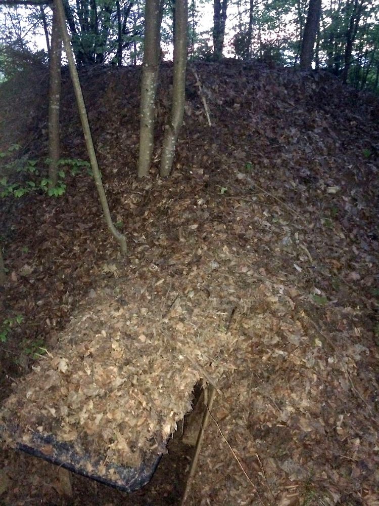 Blick in die selbstgebaute Erdbehausung in einem Steinbruch im Landkreis Lichtenfels.