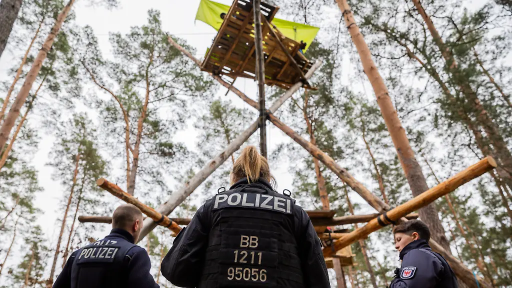 Die Aufgabe der Versammlungsbehörde sei es, die Versammlungsfreiheit zu schützen, aber auch zu gewährleisten, dass niemand in Gefahr gebracht werde, sagte Stübgen. Die Polizei habe deshalb am Dienstag vor dem Oberverwaltungsgericht Berlin-Brandenburg gegen den Beschluss des Verwaltungsgerichts Potsdam Beschwerde eingelegt. Umweltministerium, Bauamt und Forstbehörde müssten nun im Detail mögliche Gefahren begründen. Das Gericht bestätigte den Eingang der Beschwerde.