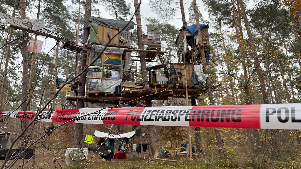 Zunächst ist nur von einem Kampfmitteleinsatz die Rede, für den das Camp vorübergehend geräumt werden soll. Doch die Tesla-Gegner wollen den Aufforderungen nicht folgen und verschanzen sich in ihren Baumhäusern. Jetzt löst die Polizei das Lager der Waldbesetzer ganz auf.