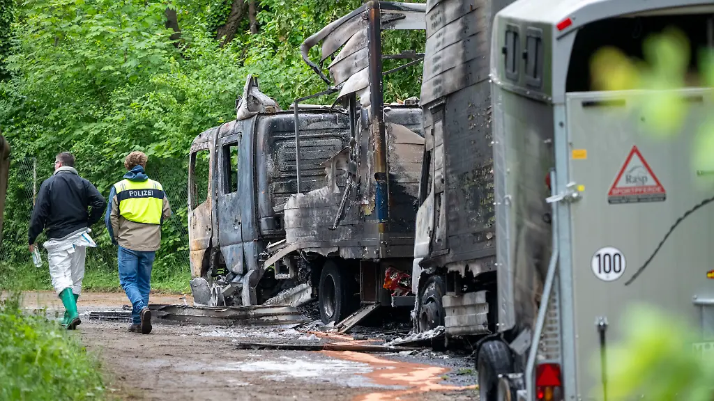 Münchner Reiterstaffel betroffenPolizeifahrzeuge in Flammen - Ermittler vermuten Anschlag