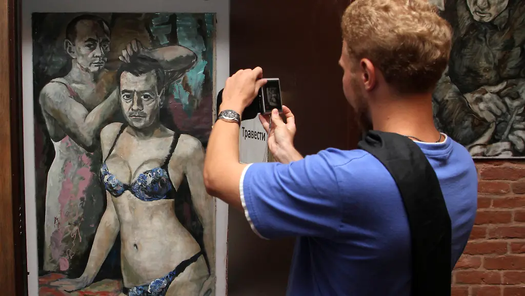 Die Beschlagnahmung konnte mit dem seit dem Sommer geltenden umstrittenen Gesetz begründet werden, das "Homosexuellen-Propaganda" vor Minderjährigen unter Strafe stellt. Eines der beschlagnahmten Gemälde des Künstlers Konstantin Altunin zeigt Putin im Unterkleid, wie er seinem mit Damen-Dessous bekleideten Ministerpräsidenten die Haare frisiert. Auf einem anderen Bild ist der Autor des umstrittenen Gesetzes, der Abgeordnete Witali Milonow, mit einer Fahne in den Regenbogenfarben der Homosexuellenbewegung zu sehen.